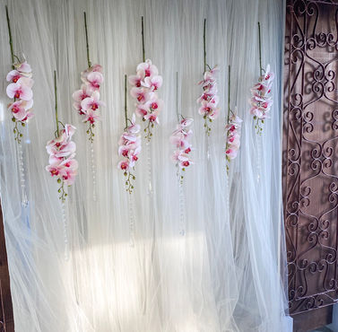 Please note that the orchids & crystals can be added onto other backdrop frames please specify upon booking. (prices may vary)