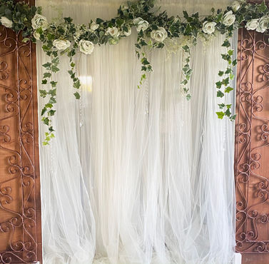 Please note that the vintage roses and crystals can be added onto other backdrop frames please specify upon booking. (prices may vary)